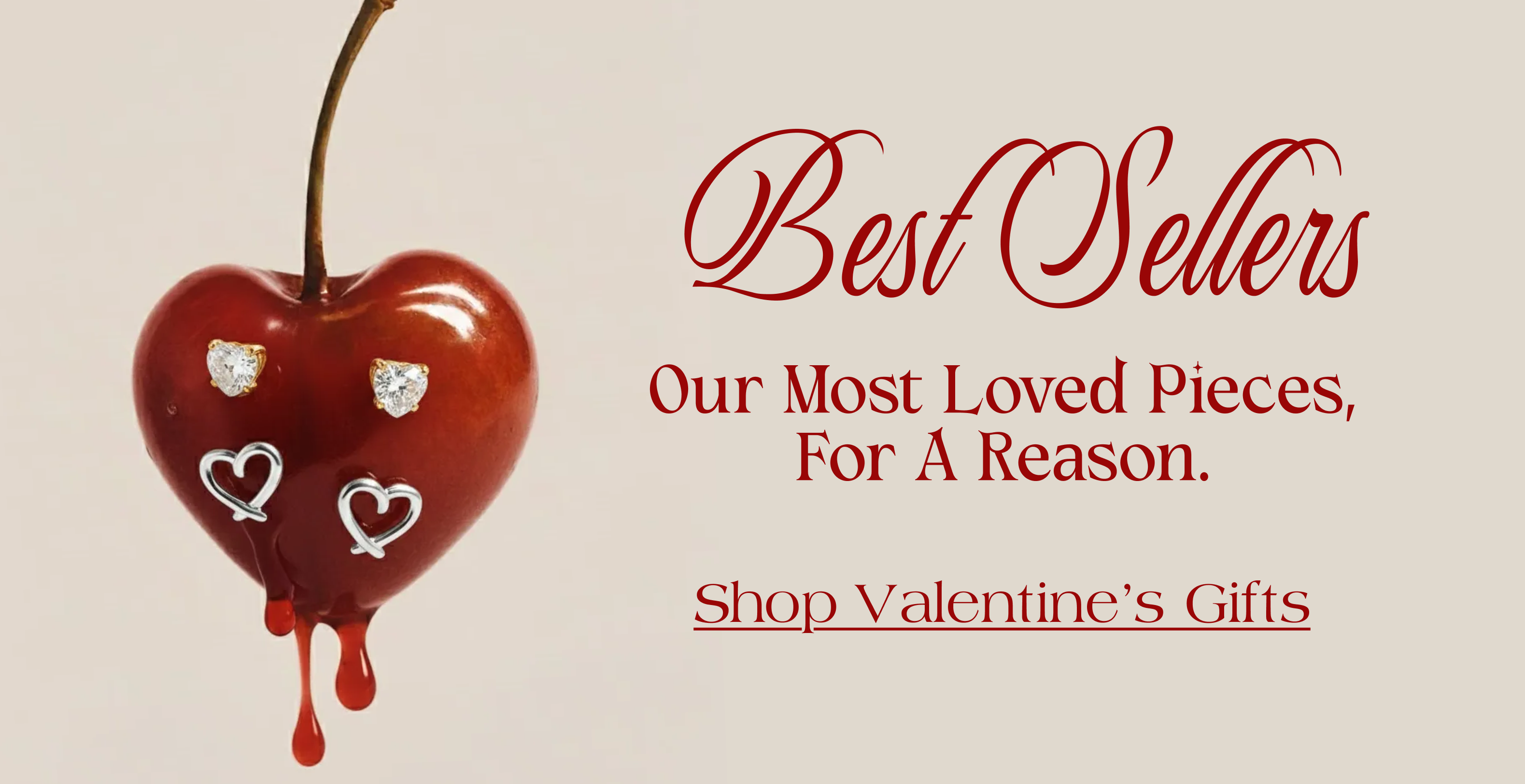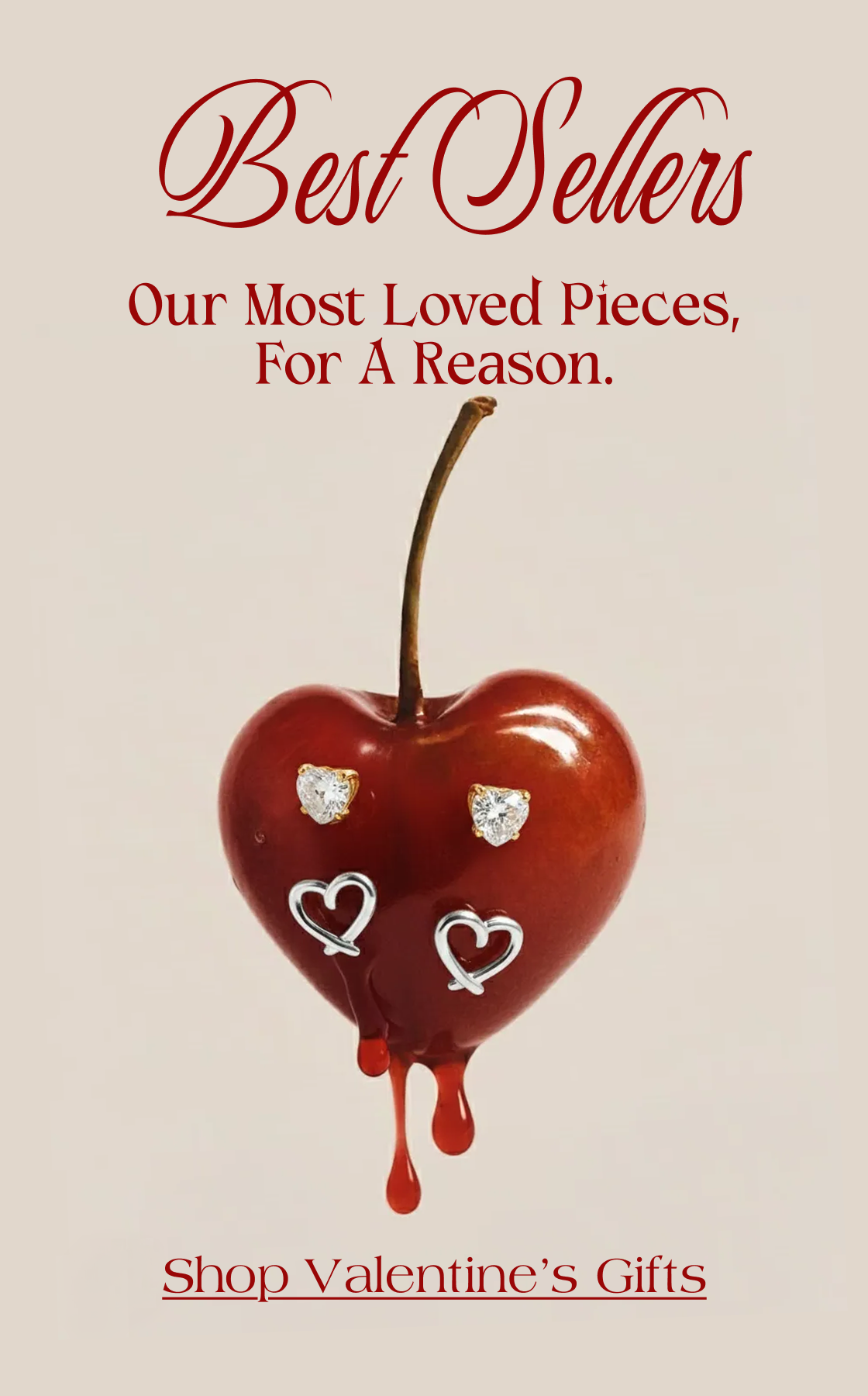 Close-up of a girl wearing a silver cherry hoop earring with a neutral backgroundSilver cherry hoop earrings on a light pink background