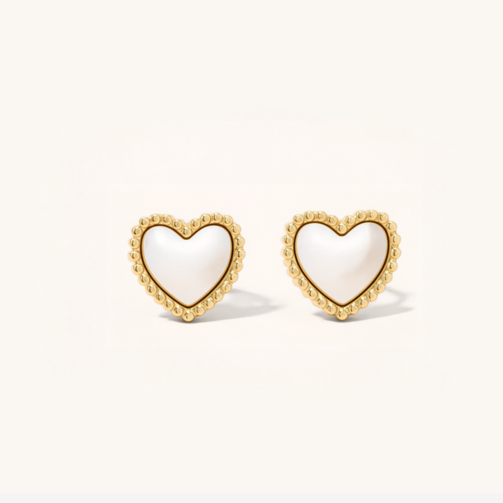 Keep it classic with the Bead Trim Shimmer Heart Stud Earrings. A modern heart design with a beaded trim and subtle shimmer for effortless style.