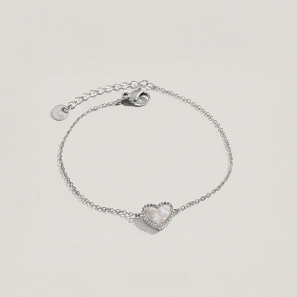 Bring subtle sparkle to your wrist with the Beaded Shimmer Heart Bracelet. Featuring a delicate beaded chain and shimmering heart charm, it’s perfect worn solo or layered with your favourite bracelets