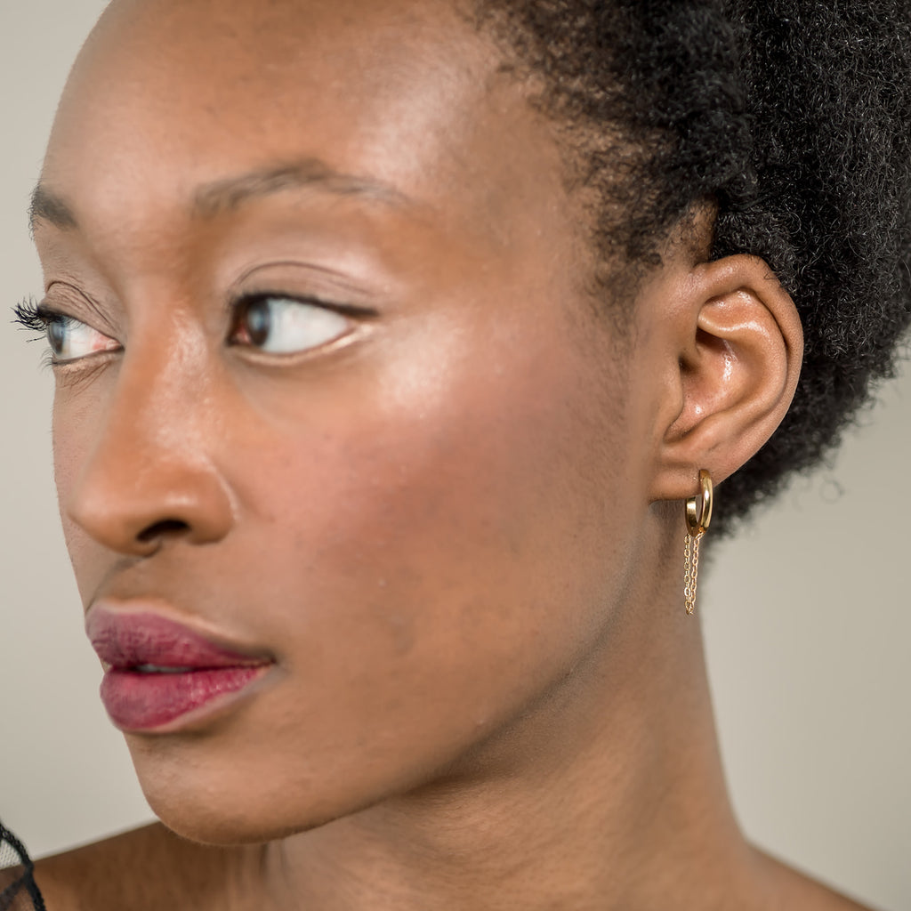 Chain Drop Huggie Hypoallergenic Earrings