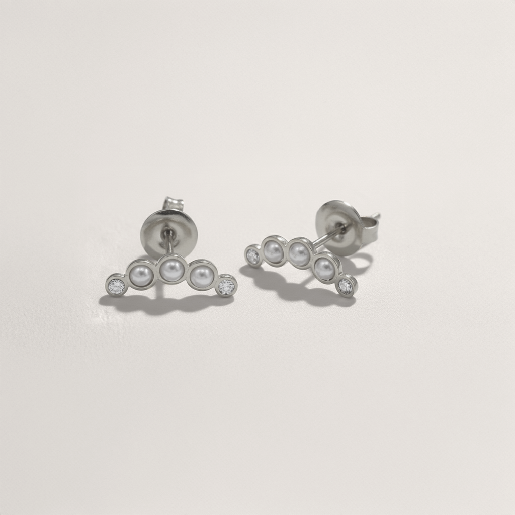The Curved Pearl Ear Climber - two CZ sparkles and two small pearls with a fresh, everyday twist.