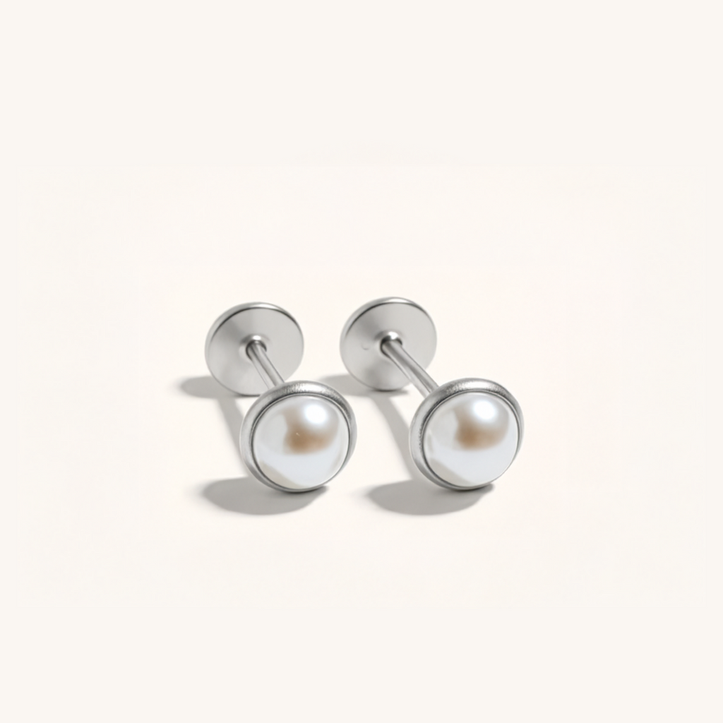 Add a touch of classic elegance with the Pearl Bezel Set Flat Back Earrings.Perfect for layering or wearing alone in silver or gold.