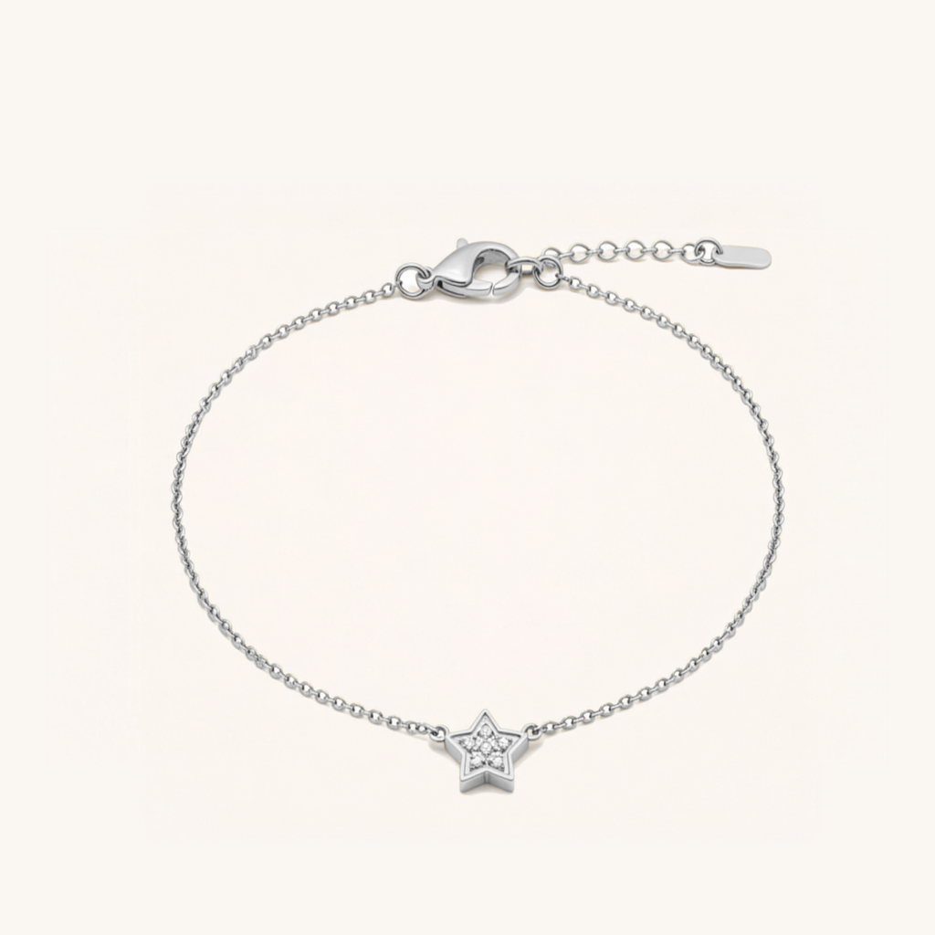 Add a little shine with the Sparkle Star Charm Bracelet. Delicate chain with a sparkling star charm - this bracelet is a subtle statement for everyday or evening wear